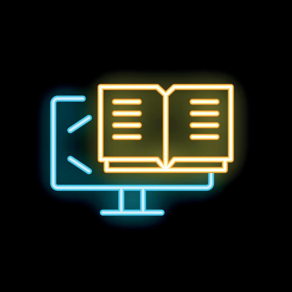 Neon icon of open book displaying on computer screen for online education Pro Vector