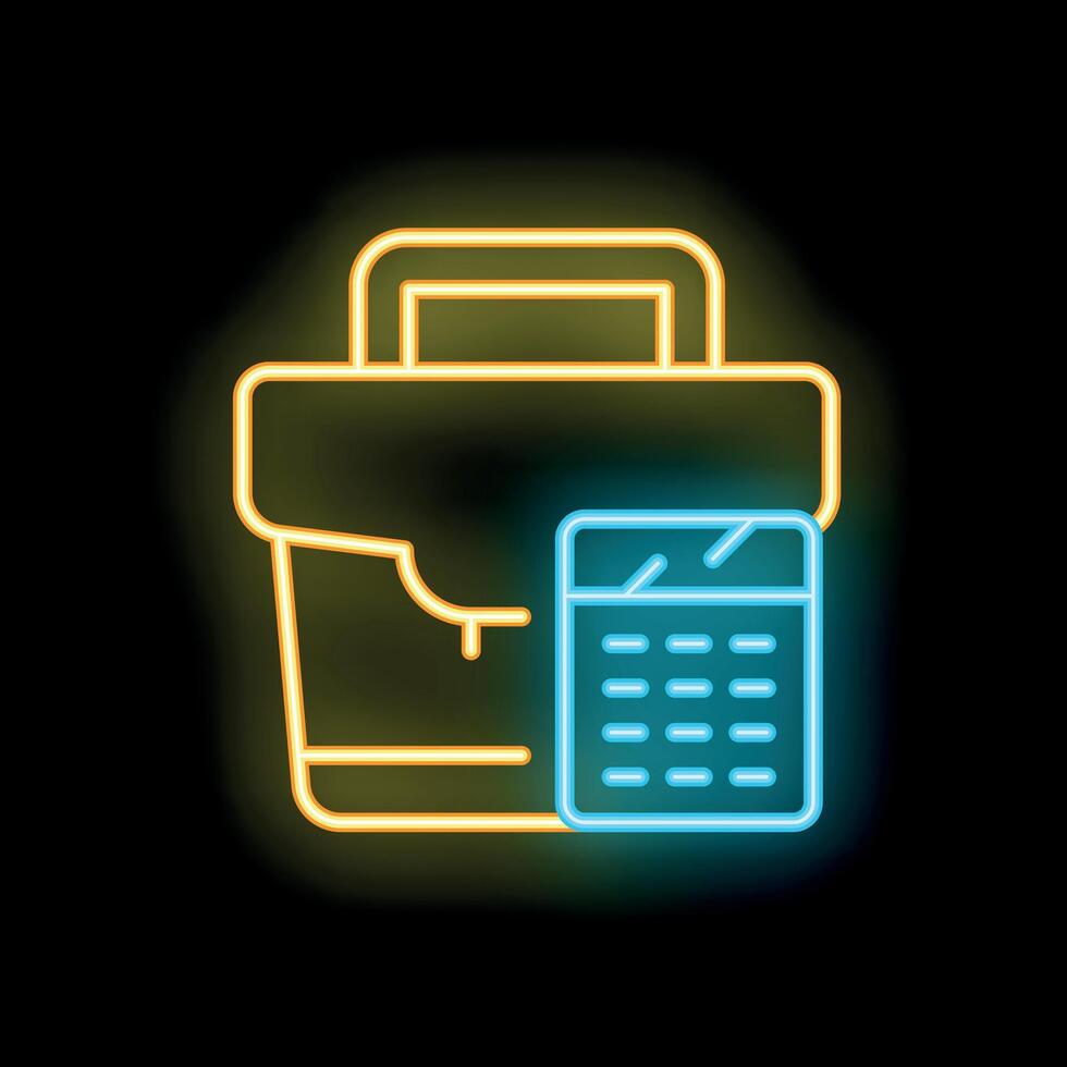 Neon icon of construction tool box and calculator representing cost estimation Pro Vector