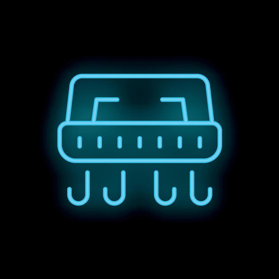 Blue neon icon of a hovercraft floating on a black background Pro Vector