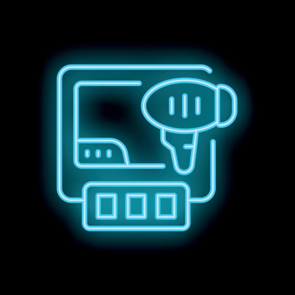 Neon icon of a voice recording software interface with microphone depicting podcasting Pro Vector