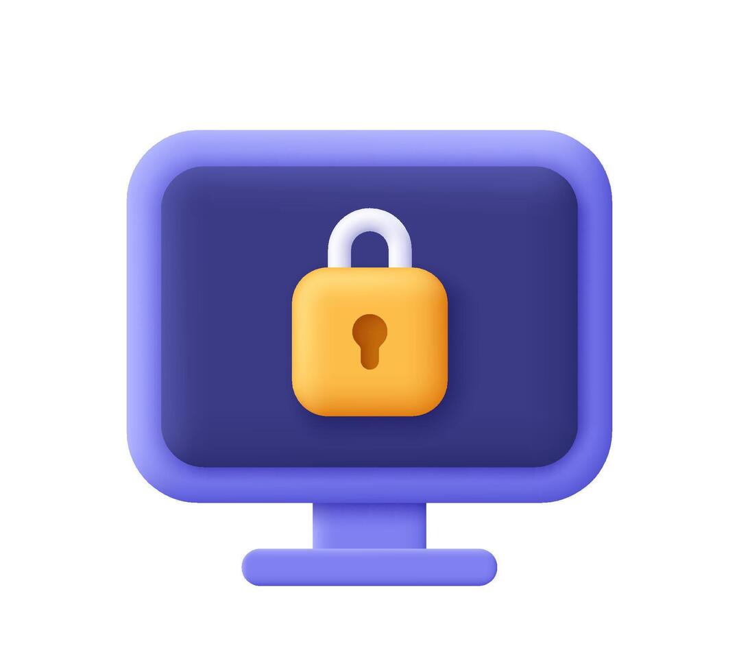Padlock on computer screen. Data protection, internet security and cyber security. 3d icon. Cartoon minimal style. Pro Vector