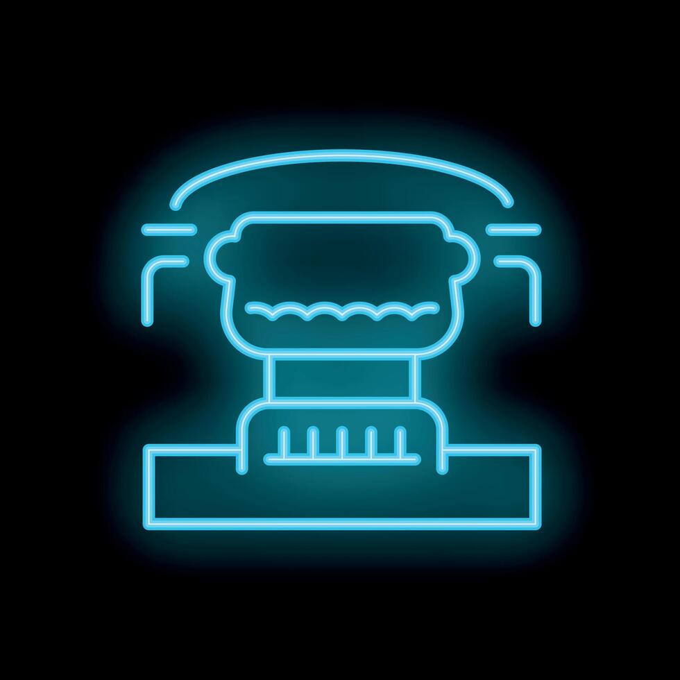 Blue neon sign icon of a food processor standing on a countertop with its lid open and steam coming out Pro Vector