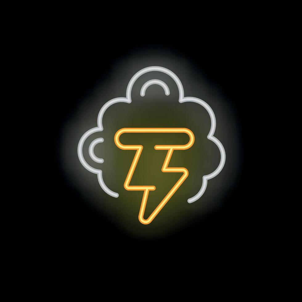 Neon sign representing tether cryptocurrency surging from cloud on black background Pro Vector
