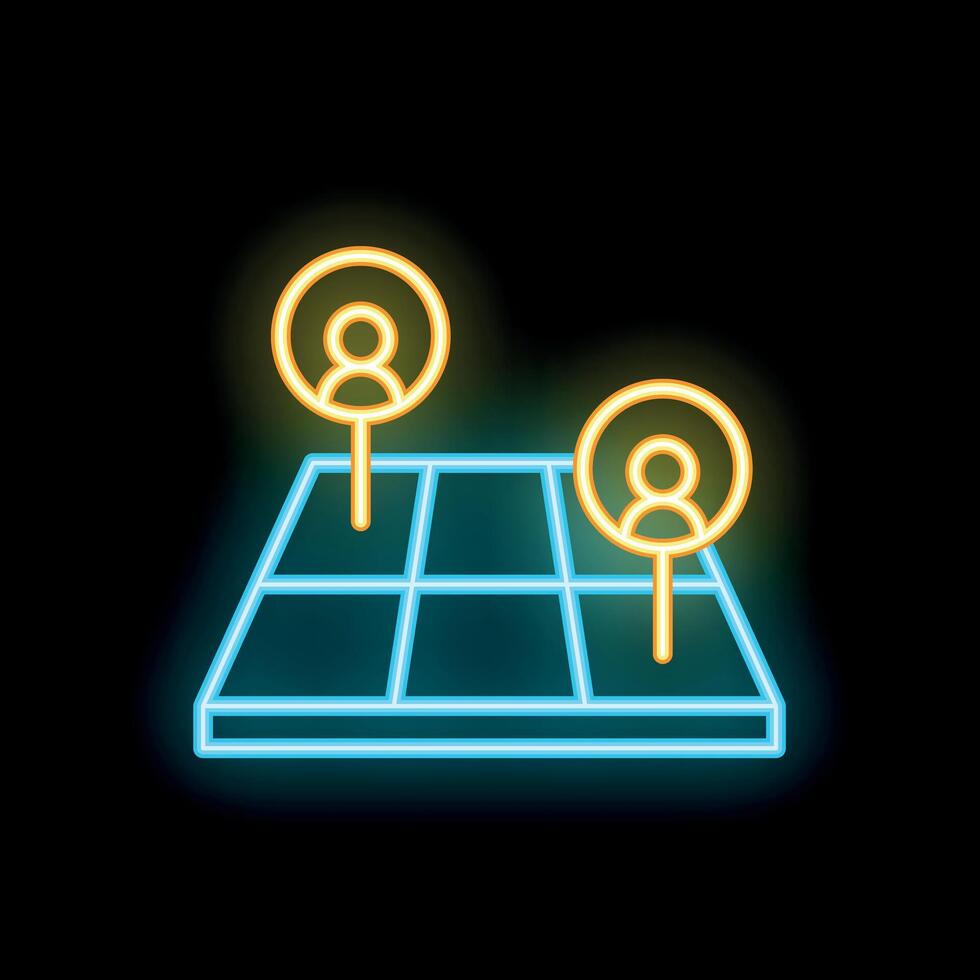 Neon icon of customer relationship management showing two persons connected on a grid Pro Vector