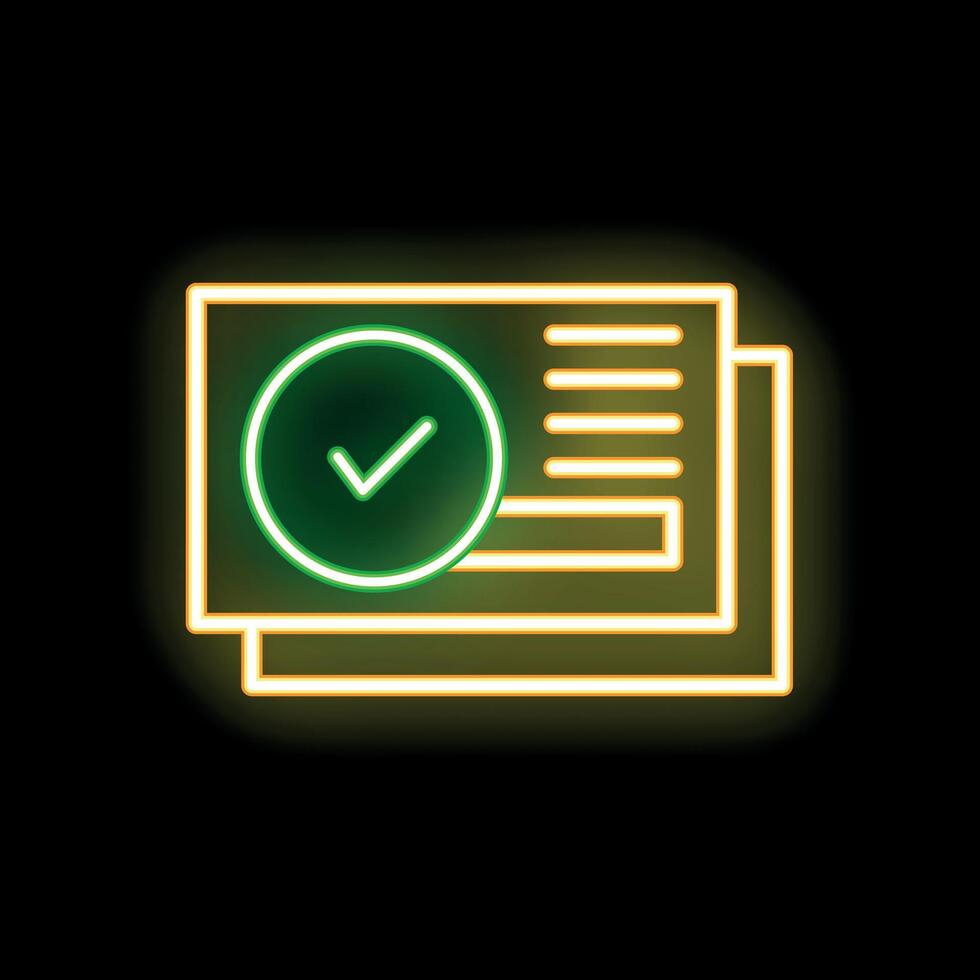 Neon icon of documents with check mark symbolizing successful verification Pro Vector