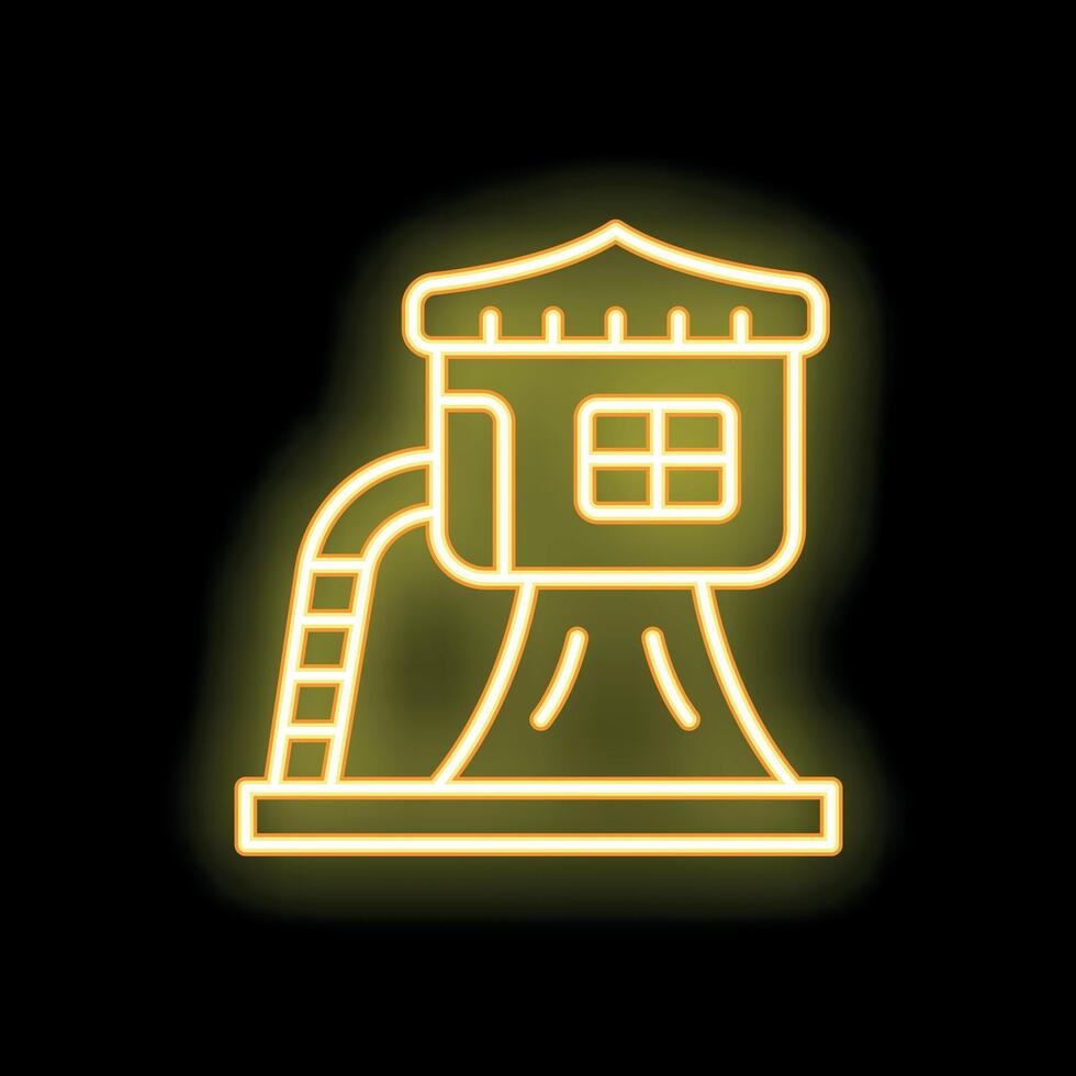 Neon sign of a treehouse with slide glowing on black background Pro Vector