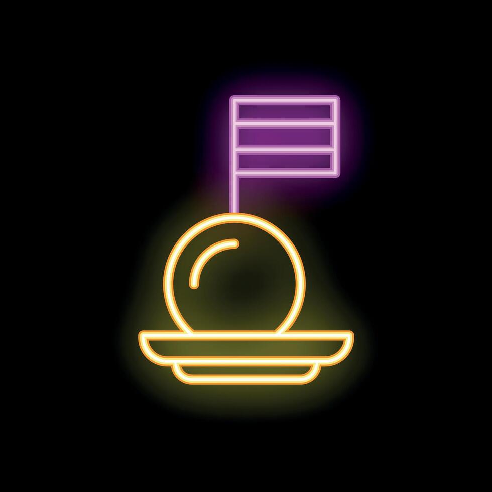 Neon sign of planet with flag representing colonization of space Pro Vector