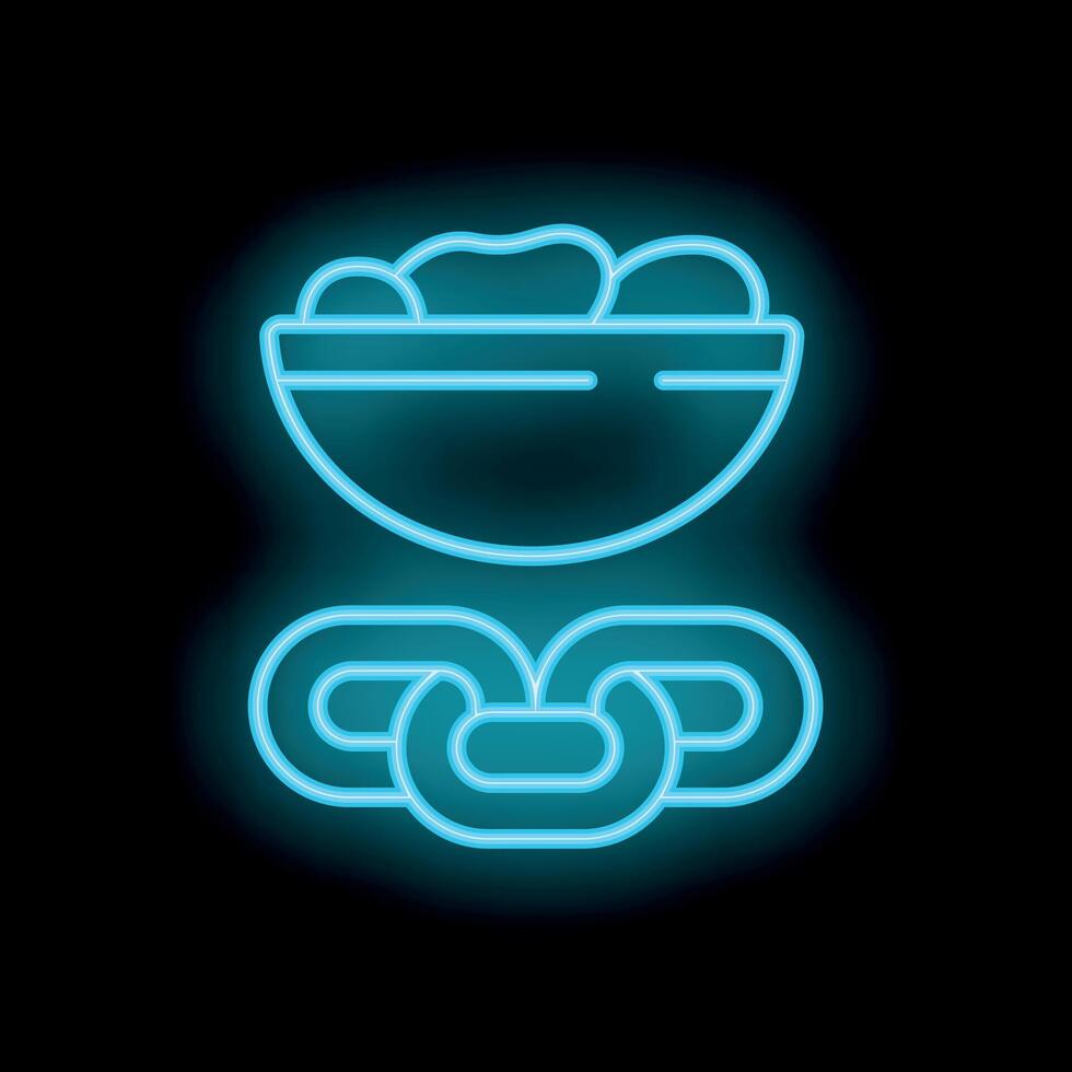 Neon icon of bowl full of crypto coins representing concept of food security in blockchain technology Pro Vector