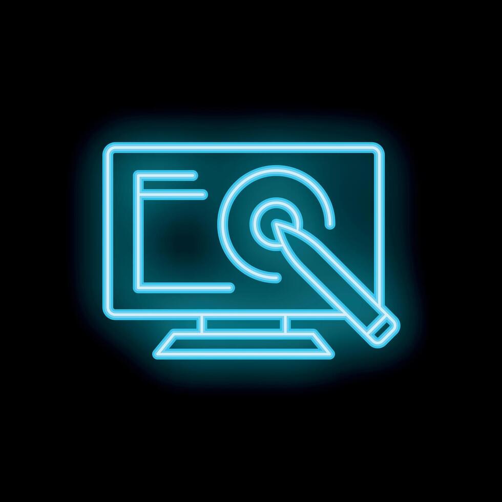 Neon icon of graphic design software interface displaying pen tool editing graphic Pro Vector