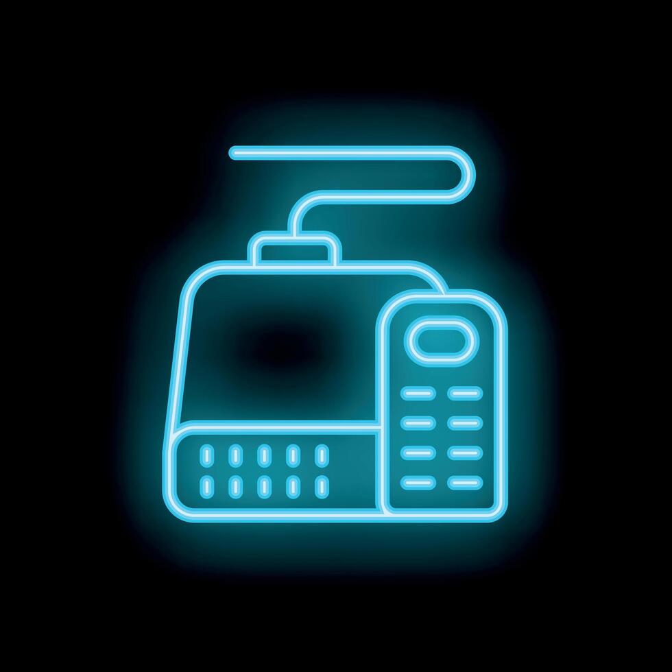 Neon router icon glowing on dark background representing internet connection Pro Vector