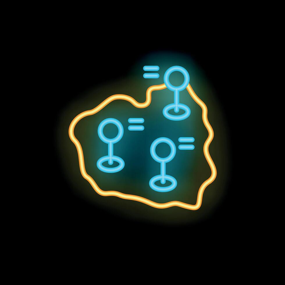 Neon icon of route planning app showing multiple location pins on a map Pro Vector