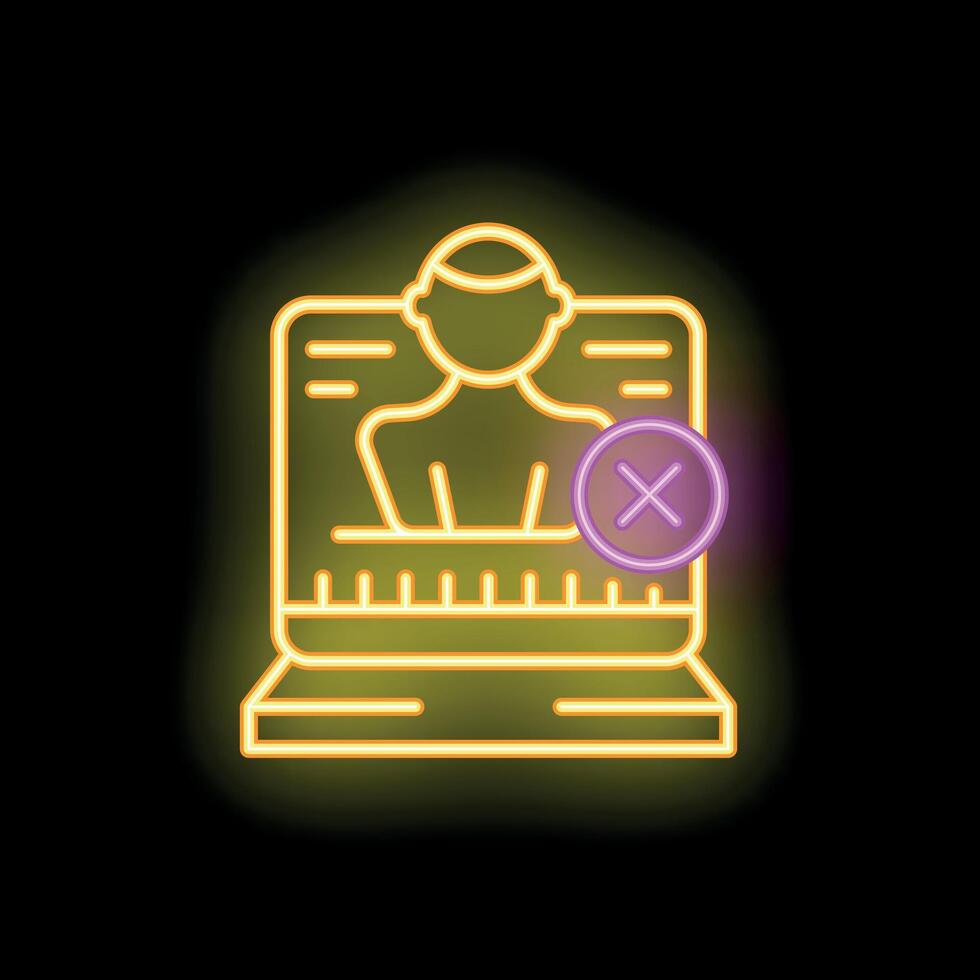 Neon icon of a computer deleting a user profile with a cross mark Pro Vector