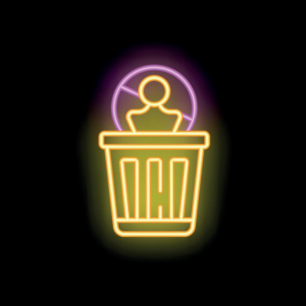 Neon sign representing no trash allowed with forbidden symbol over garbage can Pro Vector