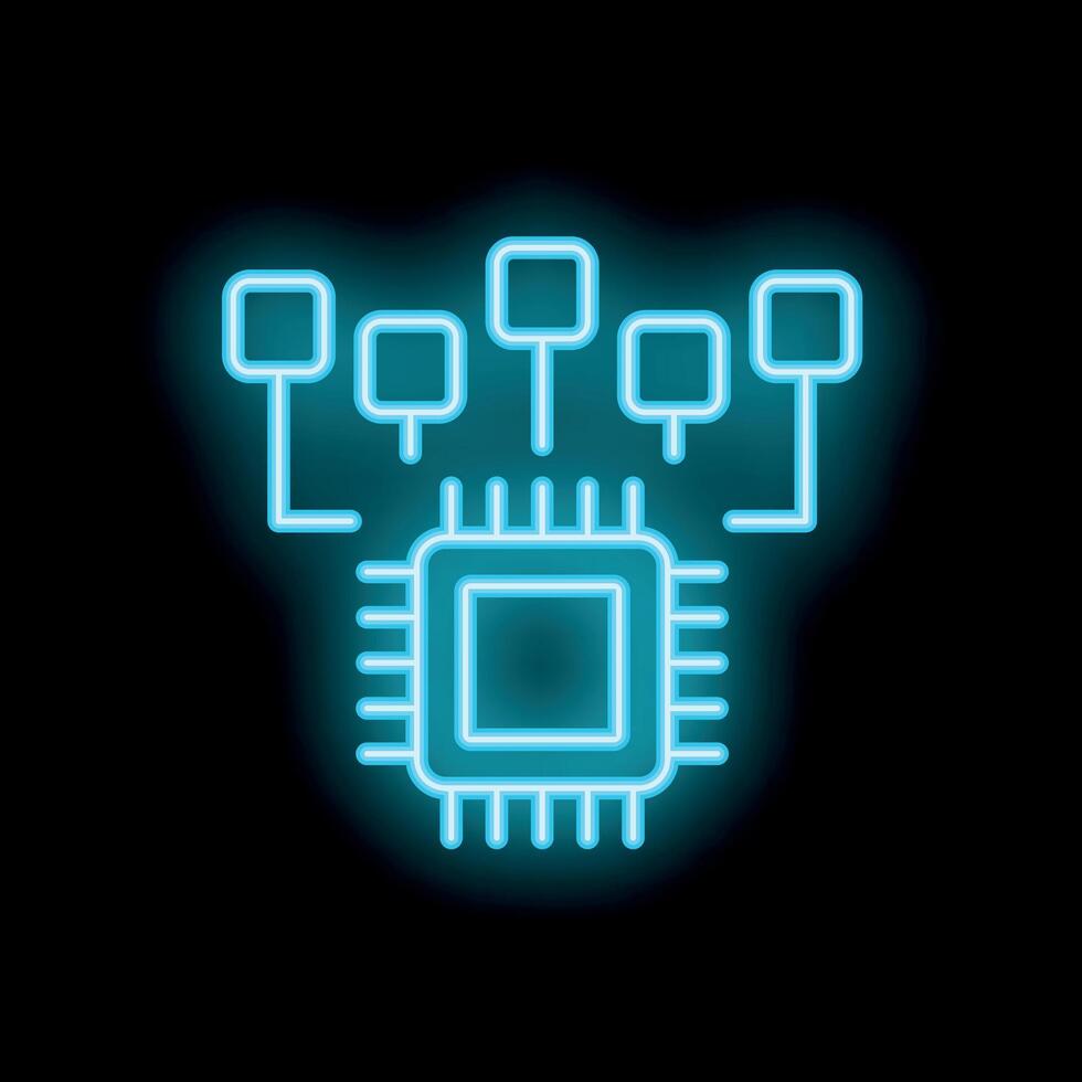 Neon blue cpu microchip connecting to multiple devices Pro Vector