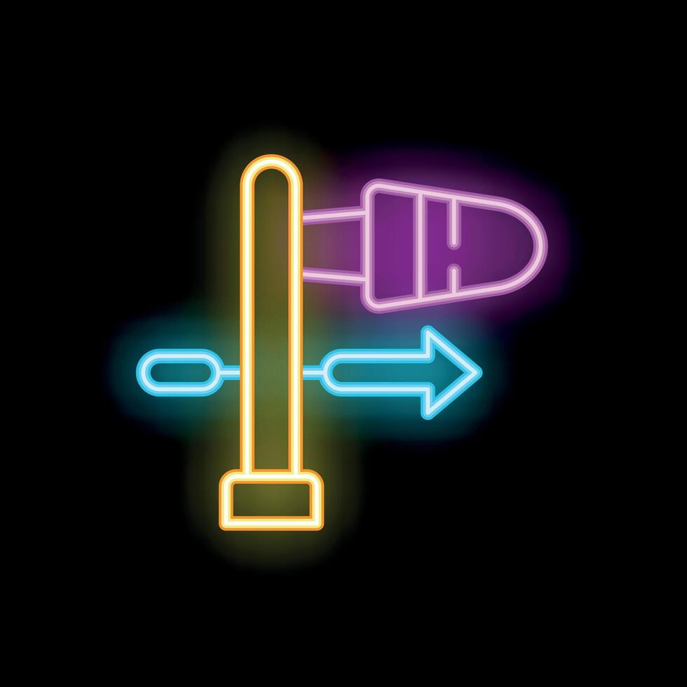 Neon sign showing wind direction with a pointer and an arrow on a black background Pro Vector