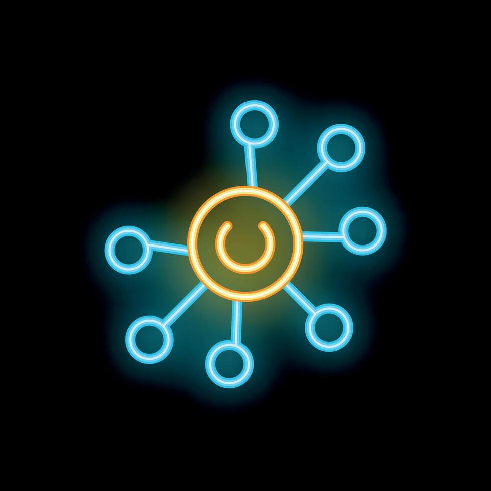 Neon icon of power button connecting to network representing decentralized system Pro Vector