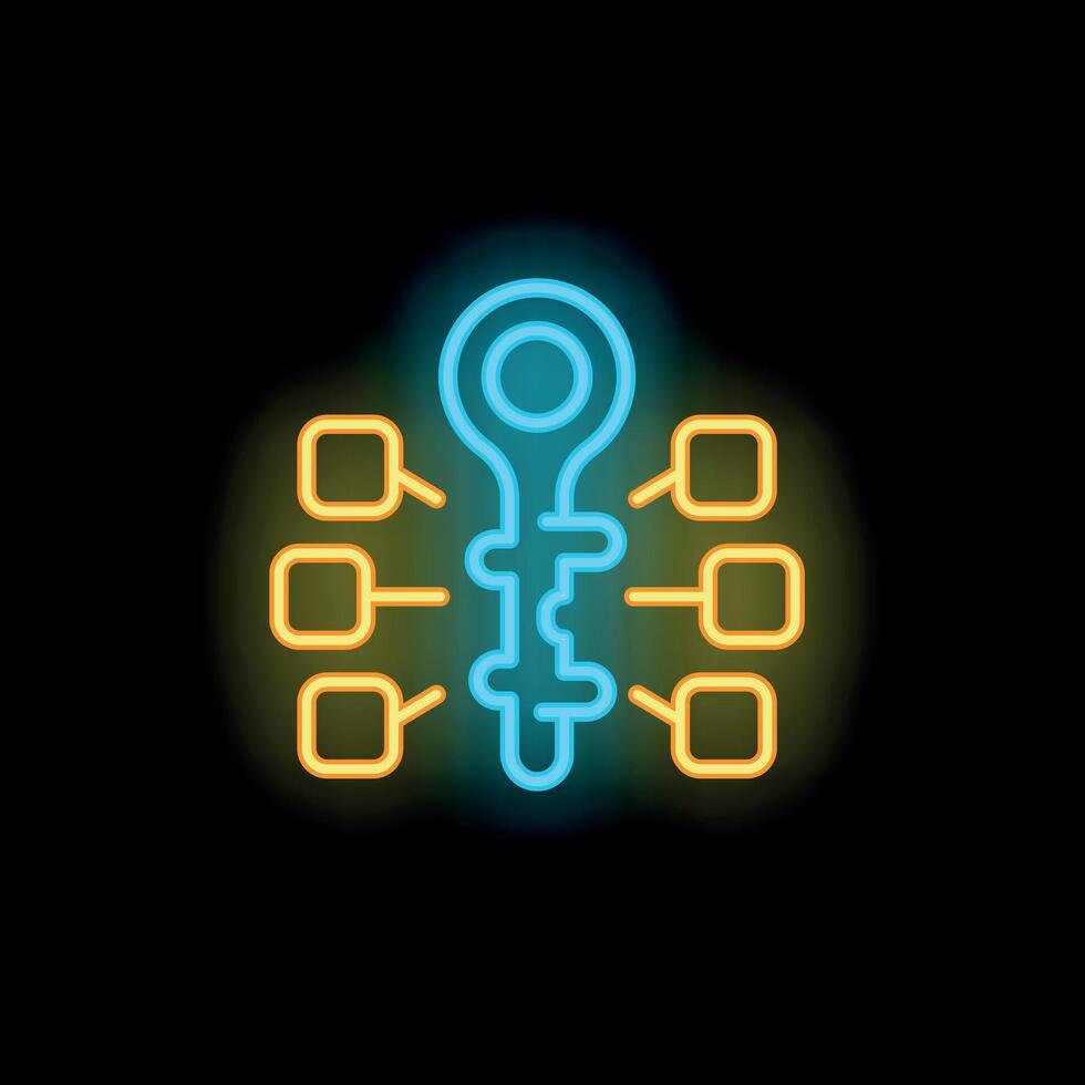 Neon key unlocking potential accessing multiple opportunities Pro Vector