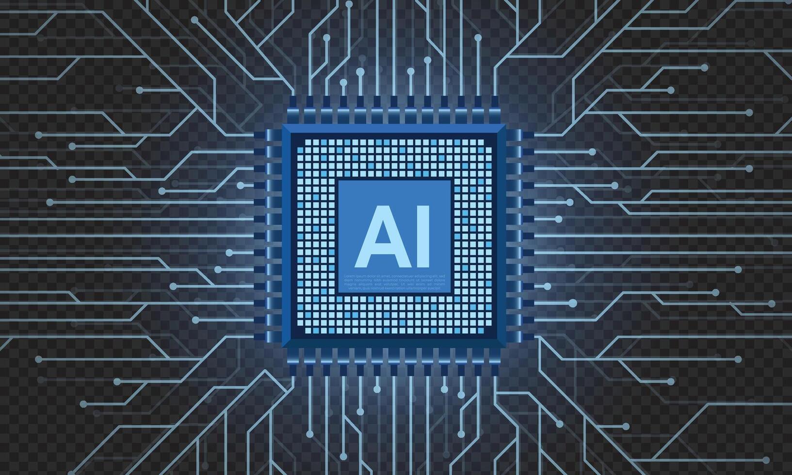 Artificial intelligence micro chip illustration. Quantum computing. Digital technology artificial intelligence concept design. Abstract futuristic hitech style. illustration Pro Vector