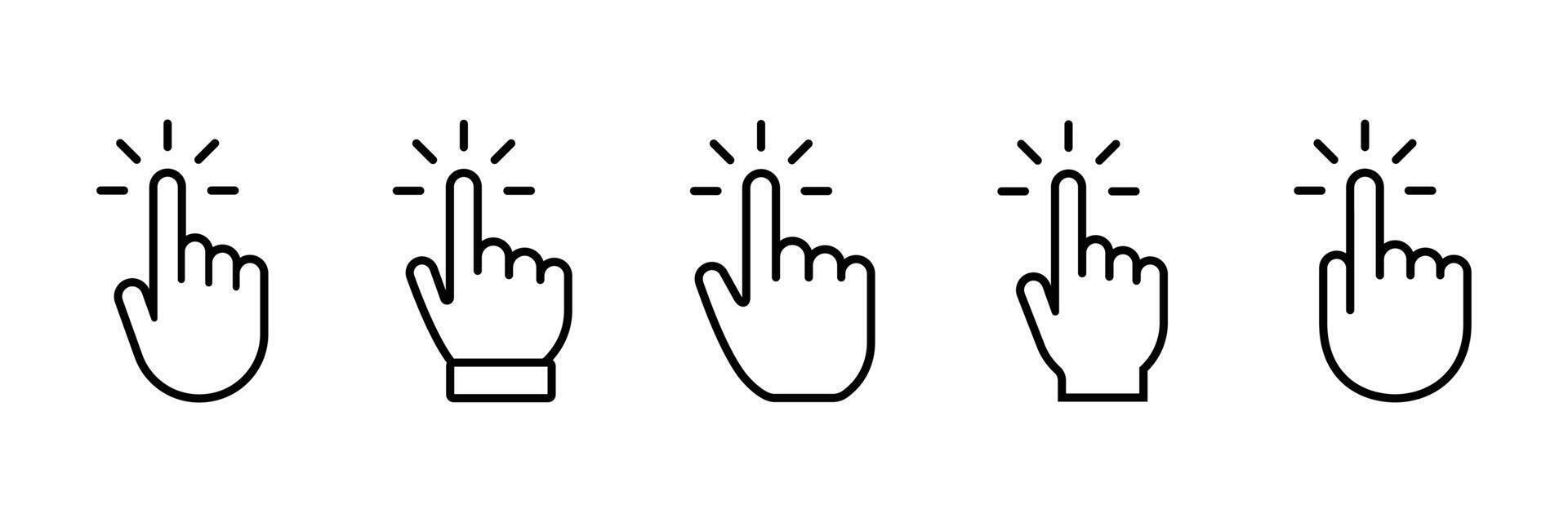 Hand pointer symbol in trendy flat style. Hand click cursor. Click cursor collection. Clicking finger. Hand pointer icon. Pro Vector