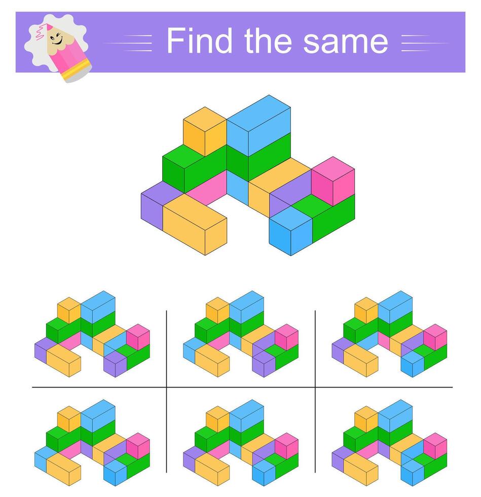 Puzzle game for kids. Task for development of attention and logic. Need to find same group of cubes. illustration Pro Vector