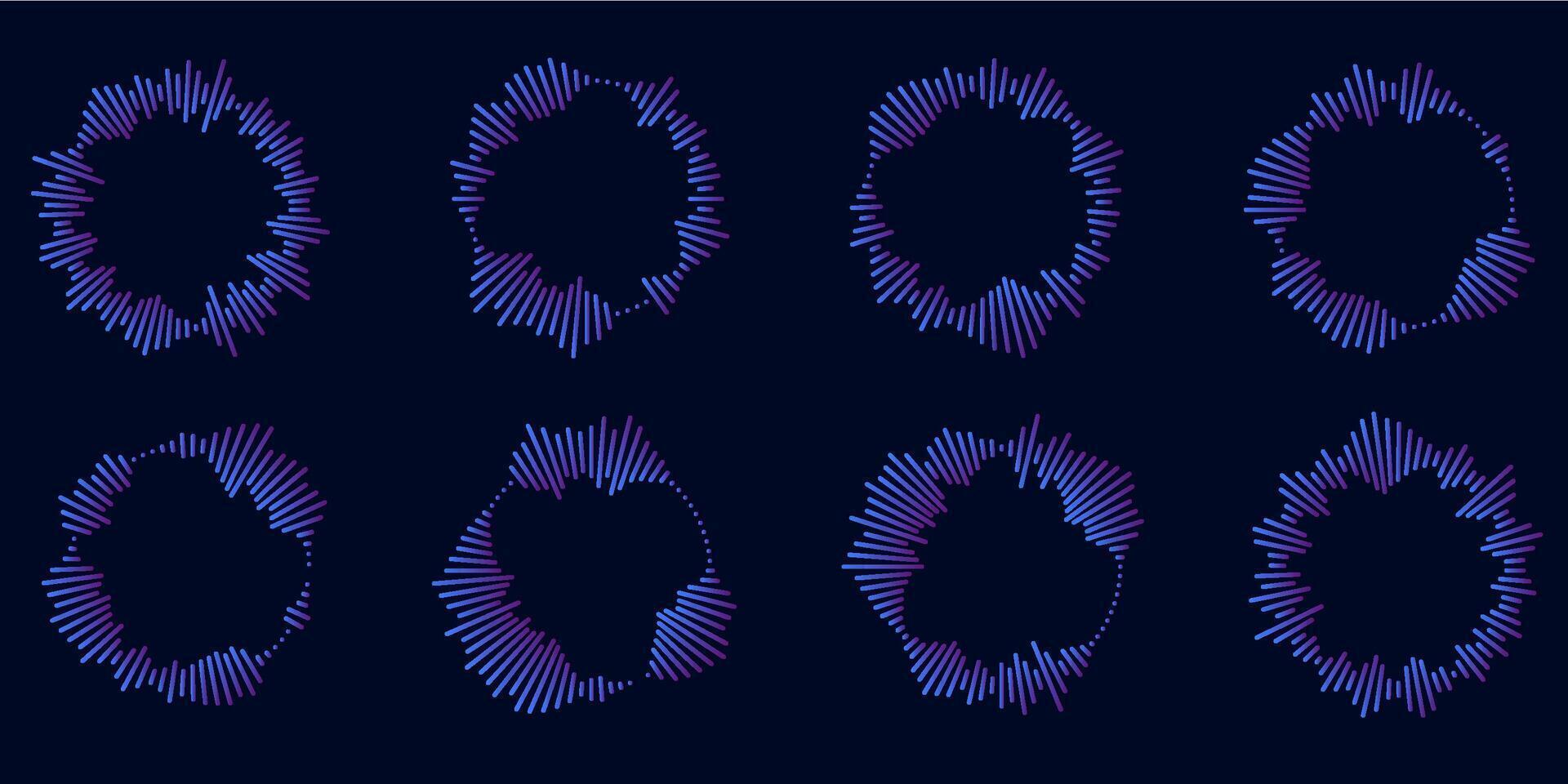 Set of circular ripple icons. Concentric circles with broken lines isolated on white background. Vortex, sonar wave, soundwave, sunburst, signal signs. graphic illustration Pro Vector