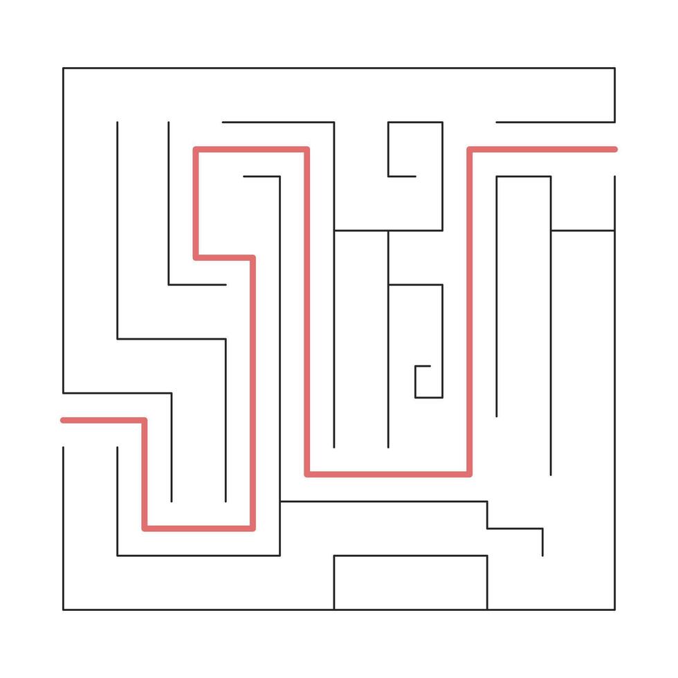 Right way across labyrinth 2D cartoon object. Brain teaser game. Finding solution to path complicated maze puzzle isolated element flat clipart on white background. Spot illustration Pro Vector