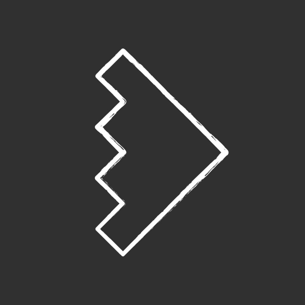 Rightward arrowhead chalk icon. Forward triangular arrow. Navigation pointer sign. Motion indicator. Geometric pointing symbol. Sideways movement. Isolated vector chalkboard illustration Free Vector