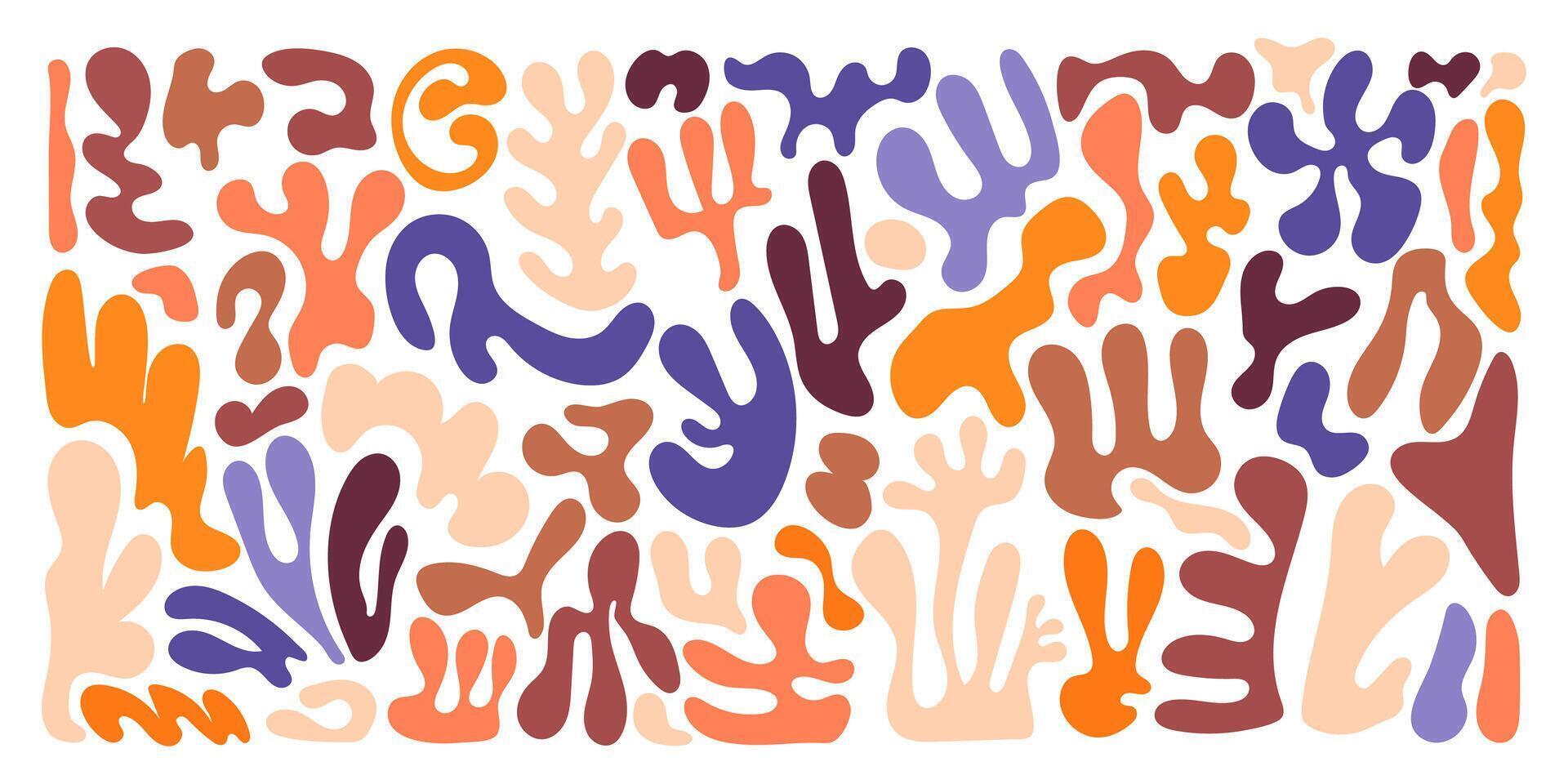 Retro Doodle Abstract Shapes in Matisse Style Isolated on White Background. Background with fluid doodle shapes. Organic random and geometric forms of flowers. Pro Vector