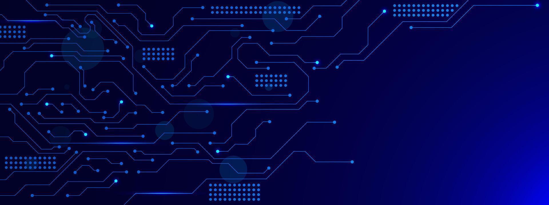 Abstract circuit board and connecting dots lines technology. Futuristic digital network connection and big data processing Pro Vector