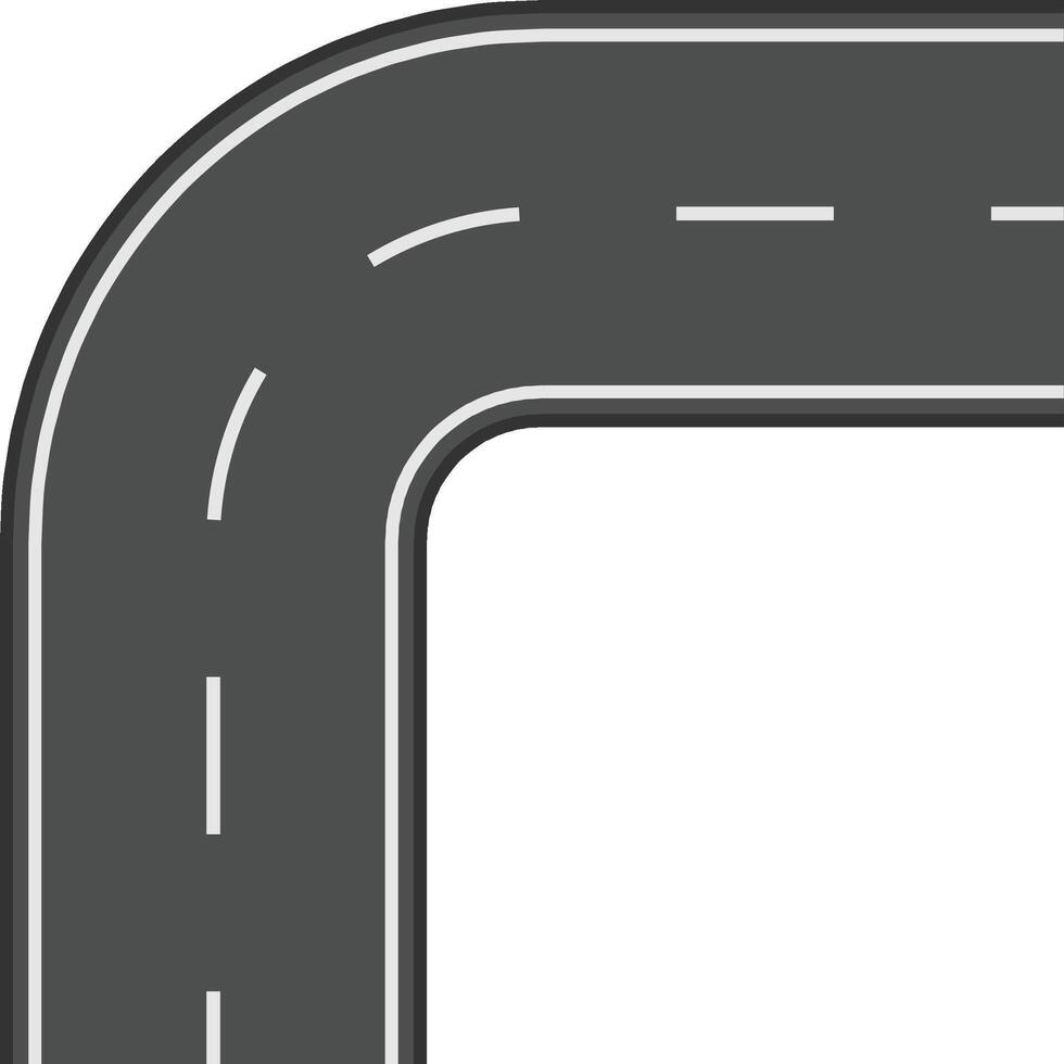 Winding road with white dashed lines making a ninety degree turn isolated on a white background, creating a simple yet effective representation of a change in direction or journey Pro Vector