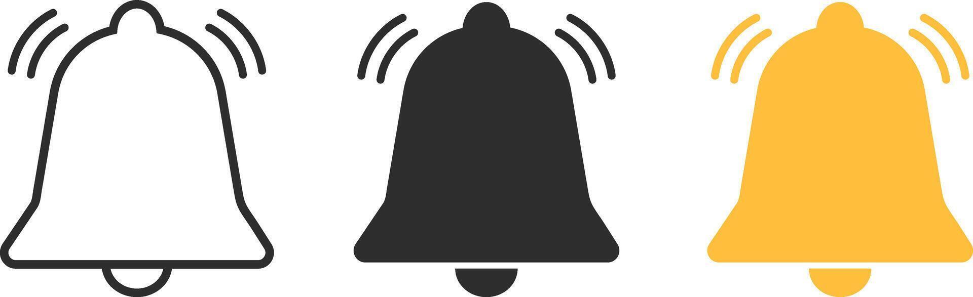 Set of notification bell icon. Incoming inbox message. Alarm clock and smartphone application alert. New message symbol Pro Vector