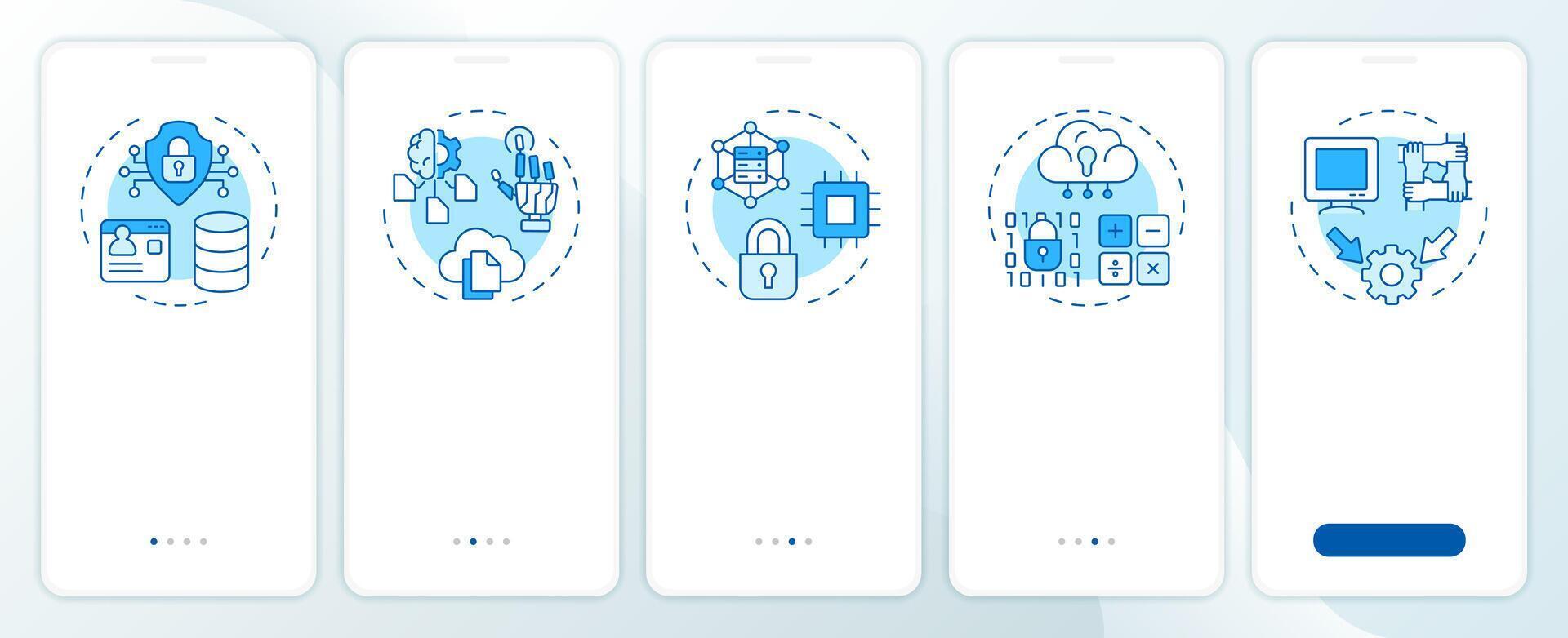 Privacy-enhancing technologies blue onboarding mobile app screen. Walkthrough 5 steps editable graphic instructions with linear concepts. UI, UX, GUI template Pro Vector