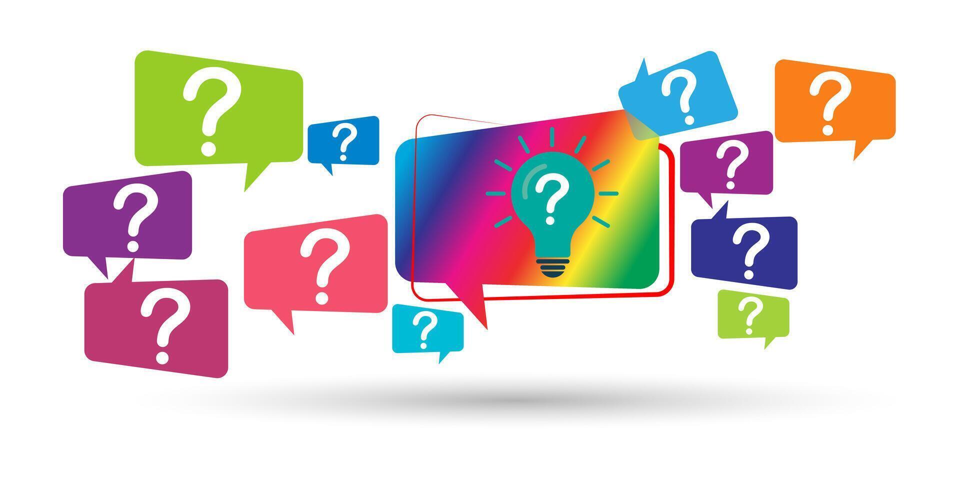 Speech bubbles with question marks symbols and light bulb icons. Solution or idea illustration. Free Vector