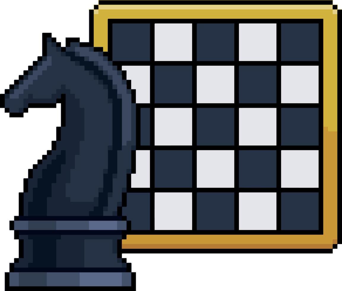 Pixel art of horse piece and chessboard in 8-bit style on white background Pro Vector