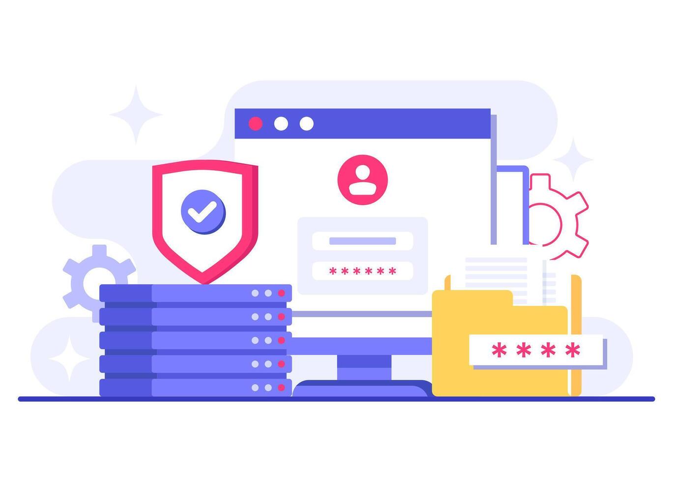 Cybersecurity solutions for cloud computing, Database protection, Data Center, File management, cloud storage, Privacy data protection flat illustration Pro Vector
