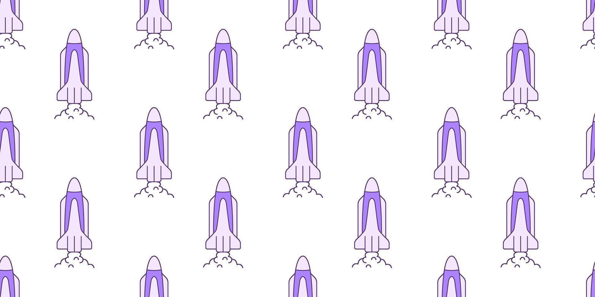 Seamless pattern with violet space rocket. Childish hand drawn repeat background. Pro Vector