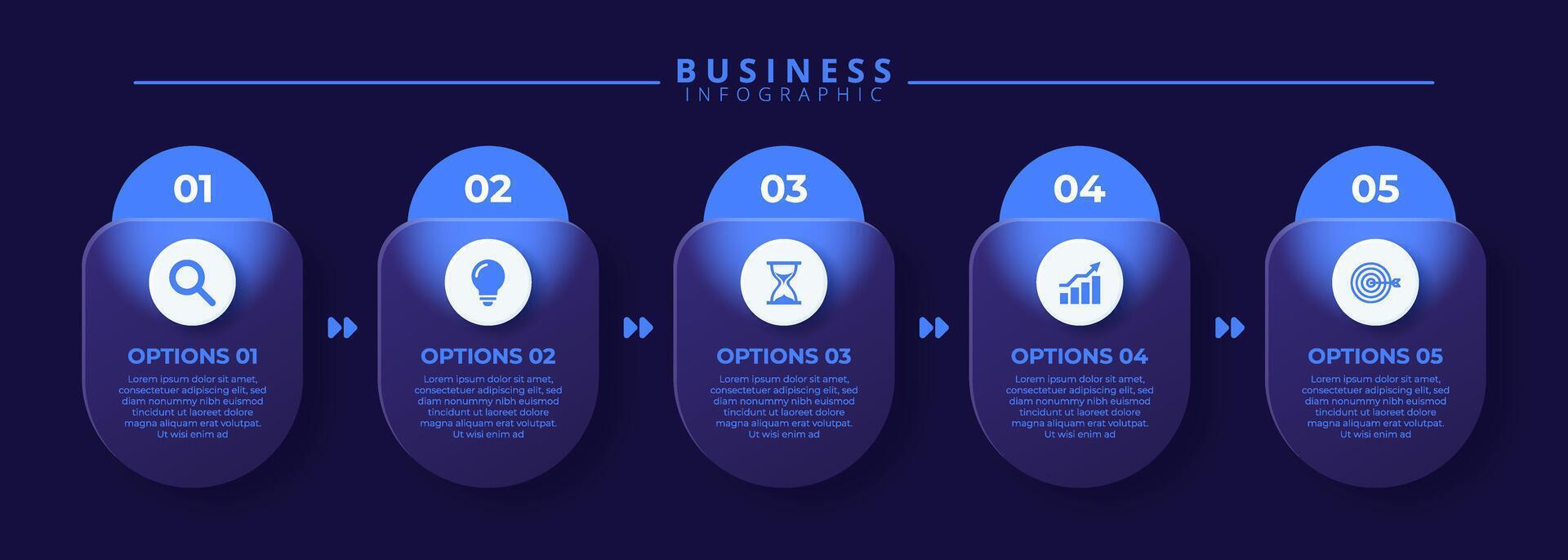 Infographic label design template featuring icons and five distinct steps. Pro Vector