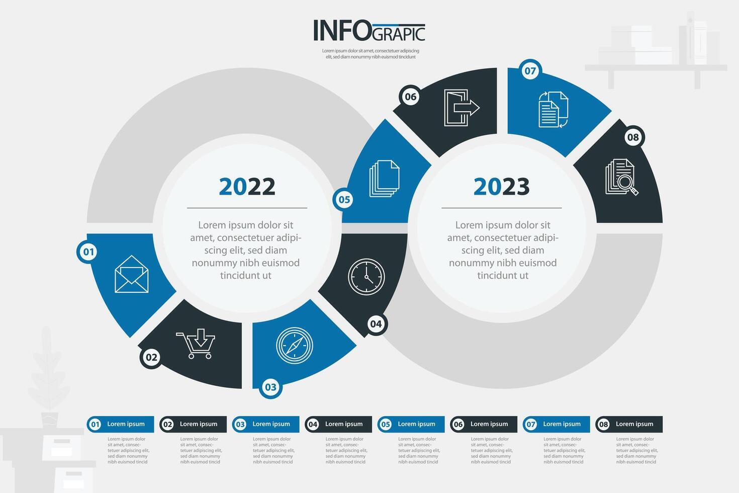 Infographic comparing key data points and trends from 2022 to 2023 in business metrics Pro Vector