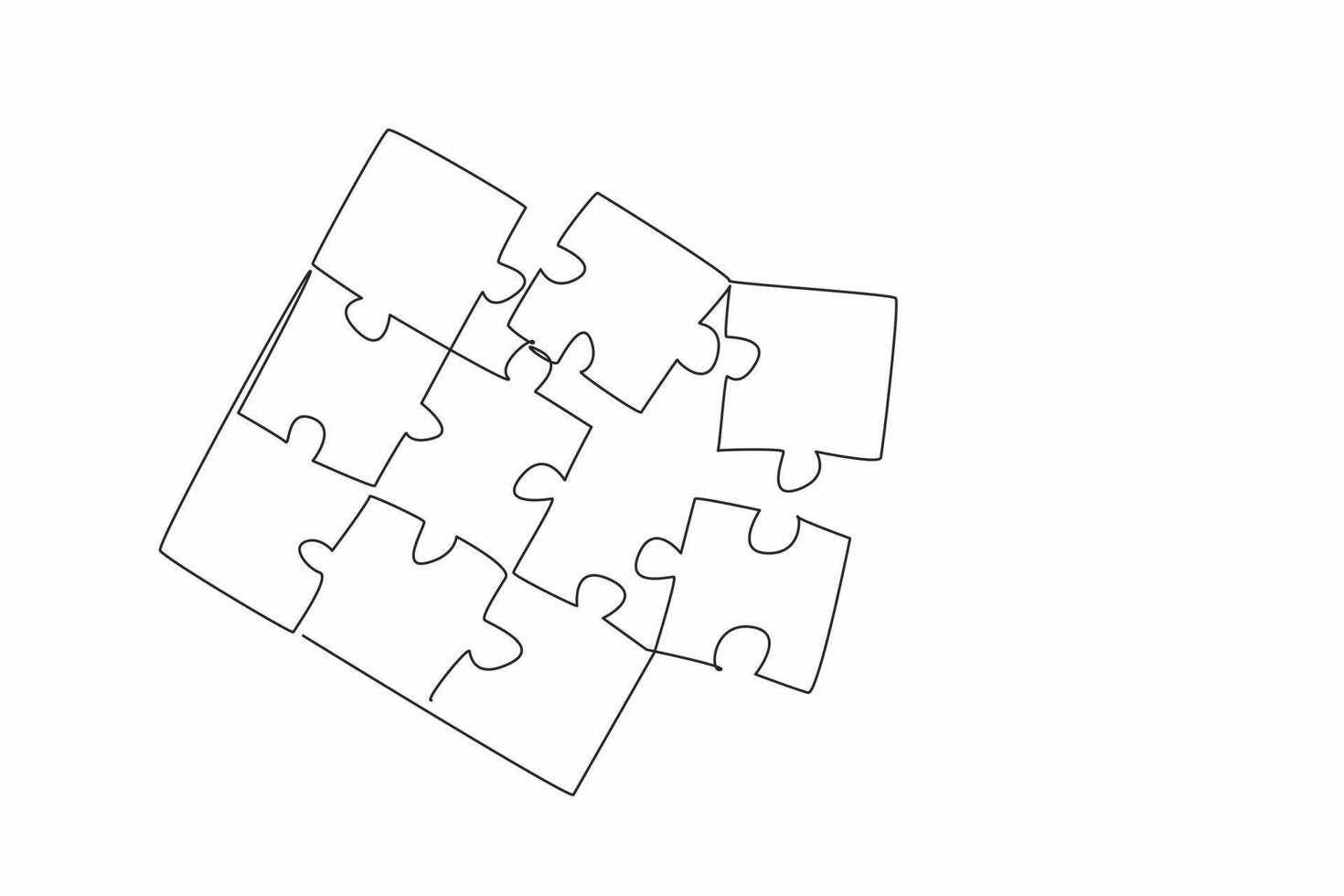 Continuous one line drawing a puzzle pieces put together and some missing. Practice sharpening brain. Different levels of difficulty. National Puzzle Day. Single line draw design illustration Pro Vector