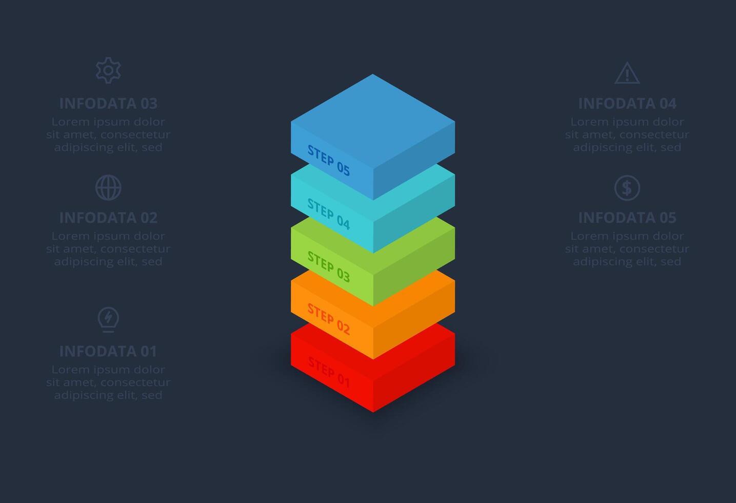 Diagram concept for infographic with 5 steps, options, parts or processes. Template for web on a black background. Pro Vector