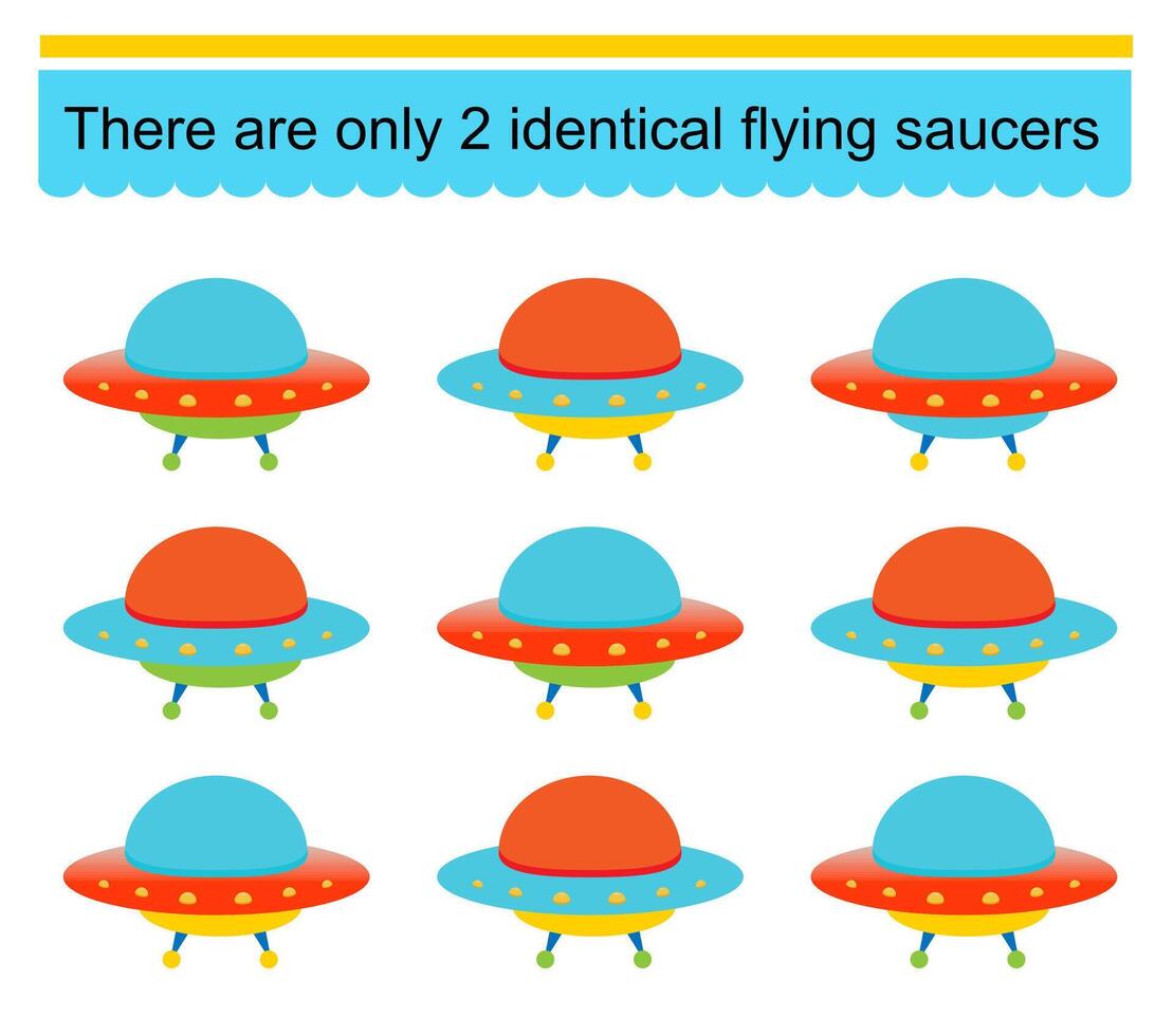 Fun puzzle game for kids. Need to find two identical flying saucers. Task for development of attention and logic. . Pro Vector