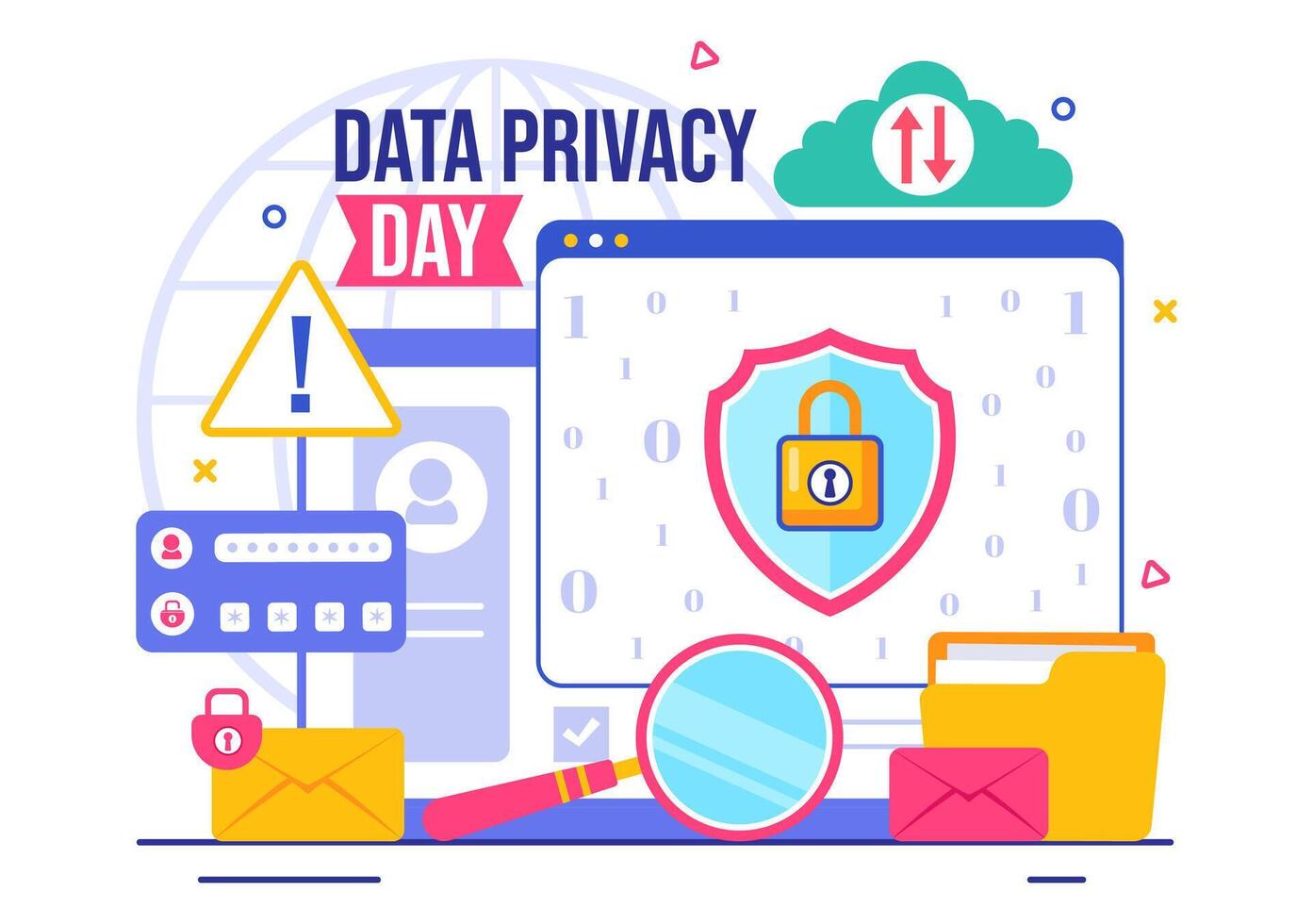 Cybersecurity Day Illustration Highlighting Data Security with Locks and Shields Pro Vector