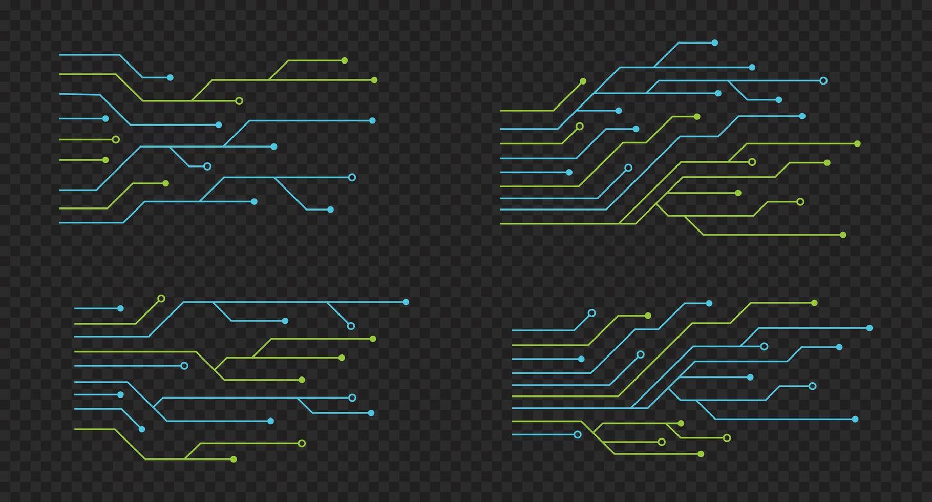 Set of printed circuit board. Abstract futuristic circuit board. Digital circuit board. Futuristic technology design elements. illustration Pro Vector