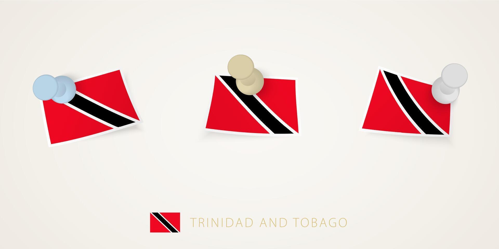 Pinned flag of Trinidad and Tobago in different shapes with twisted corners. pushpins top view. Pro Vector