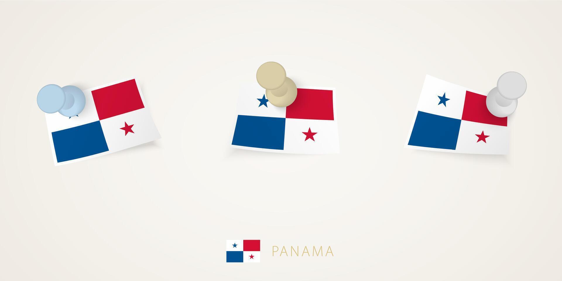 Pinned flag of Panama in different shapes with twisted corners. pushpins top view. Pro Vector