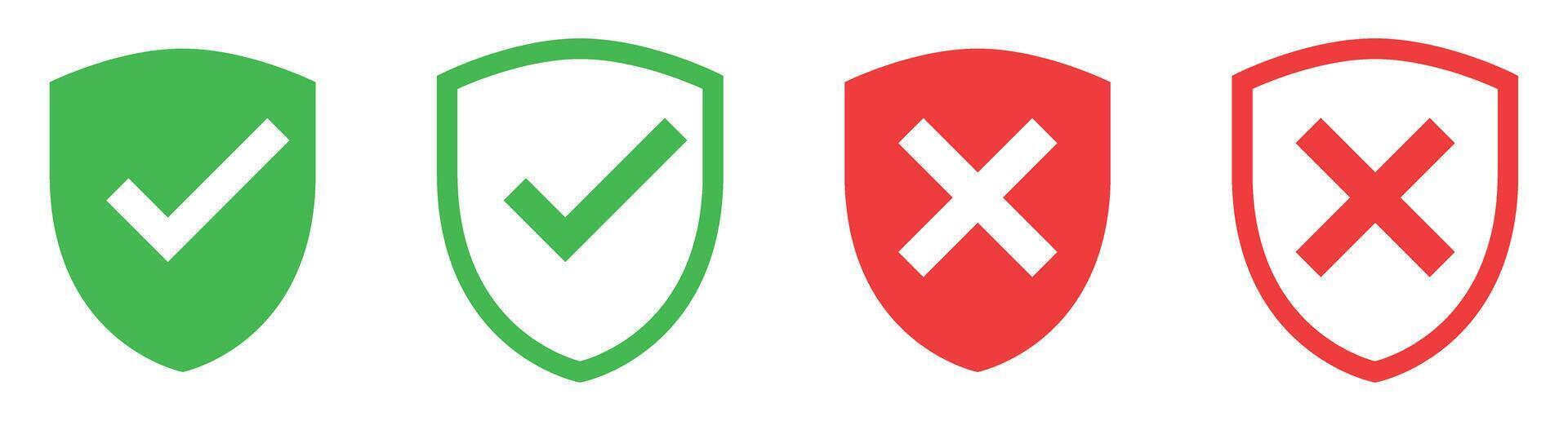 Shield with check and cross mark icon set. Safe and unsafe security icon set Pro Vector