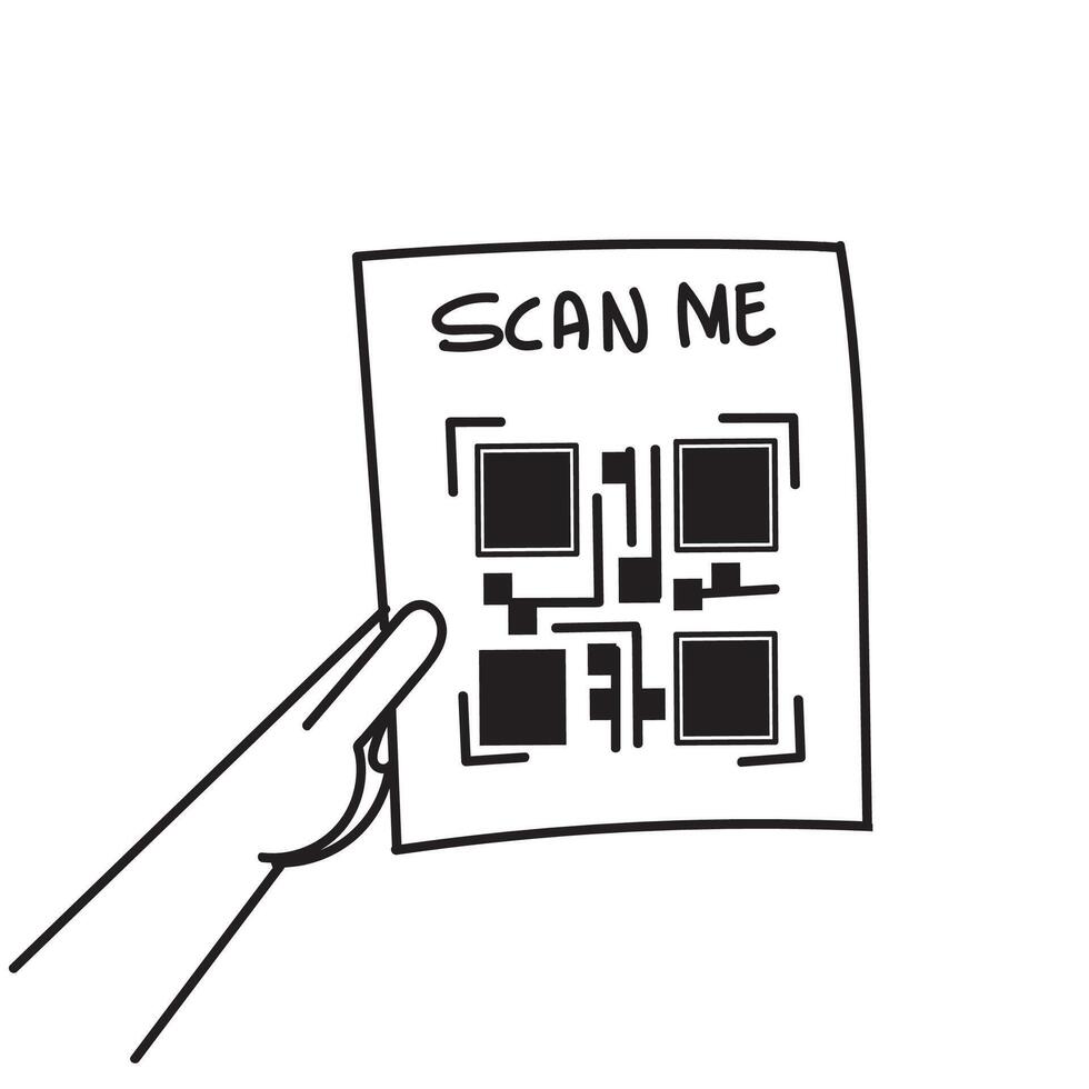a hand holding a qr code and a scan me sign Pro Vector