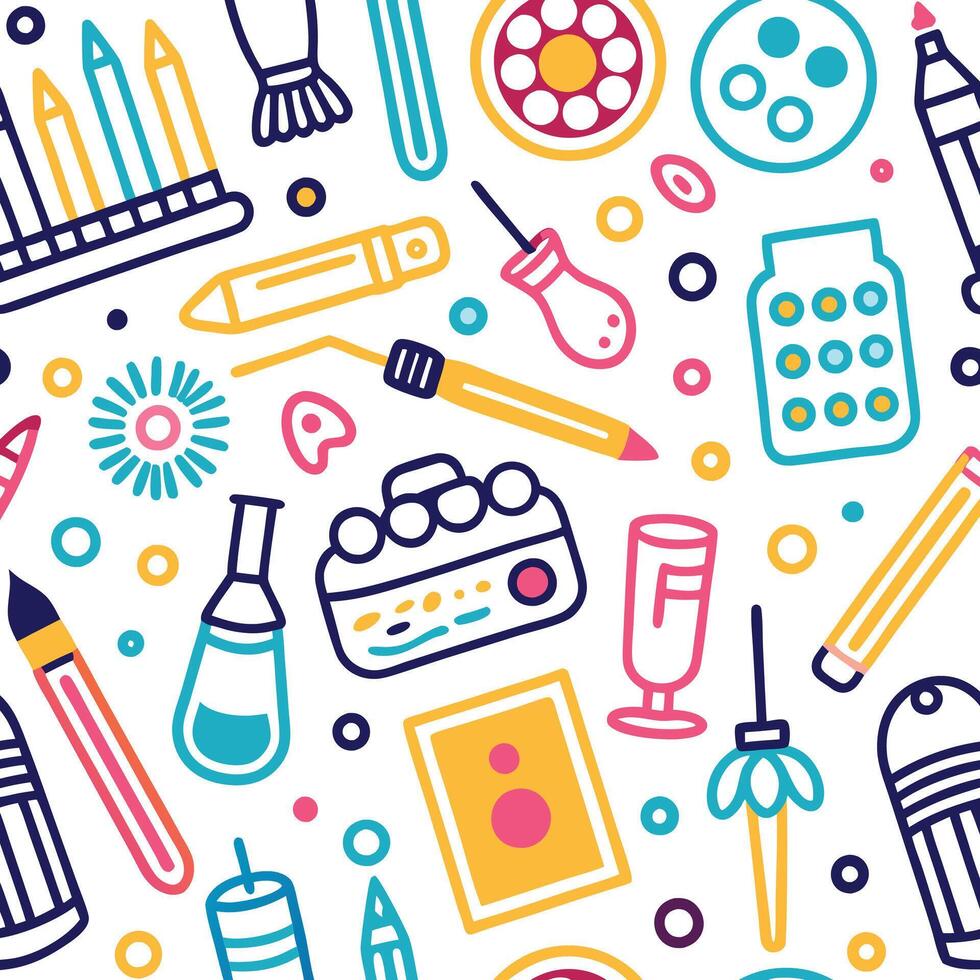 art supplies and objects in a seamless pattern vector