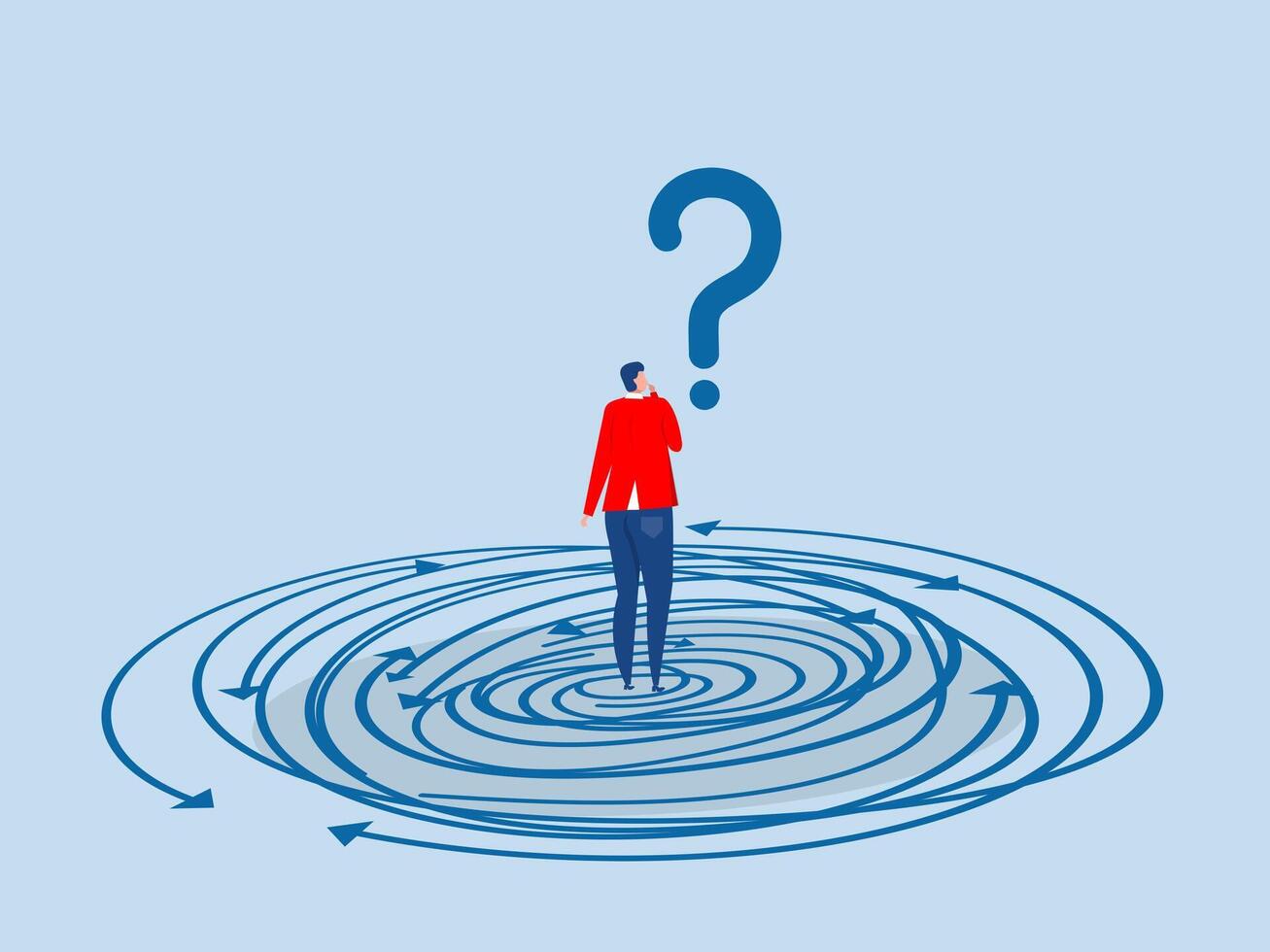 man standing and Confusion People with Navigation Arrows and Mark Questions dilemma and options confusion concept flat Pro Vector