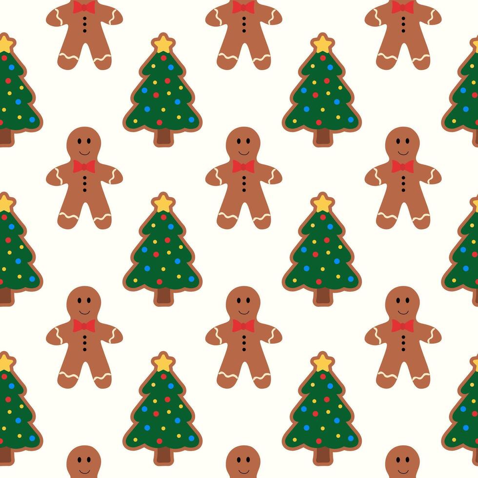Seamless Pattern with Christmas Gingerbread Cookie Man Character and Tree. flat illustration. Pro Vector